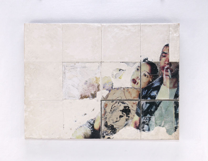 tempera, printed paper on canvas board, 2016, 22 x 22cm, one of a series of nine